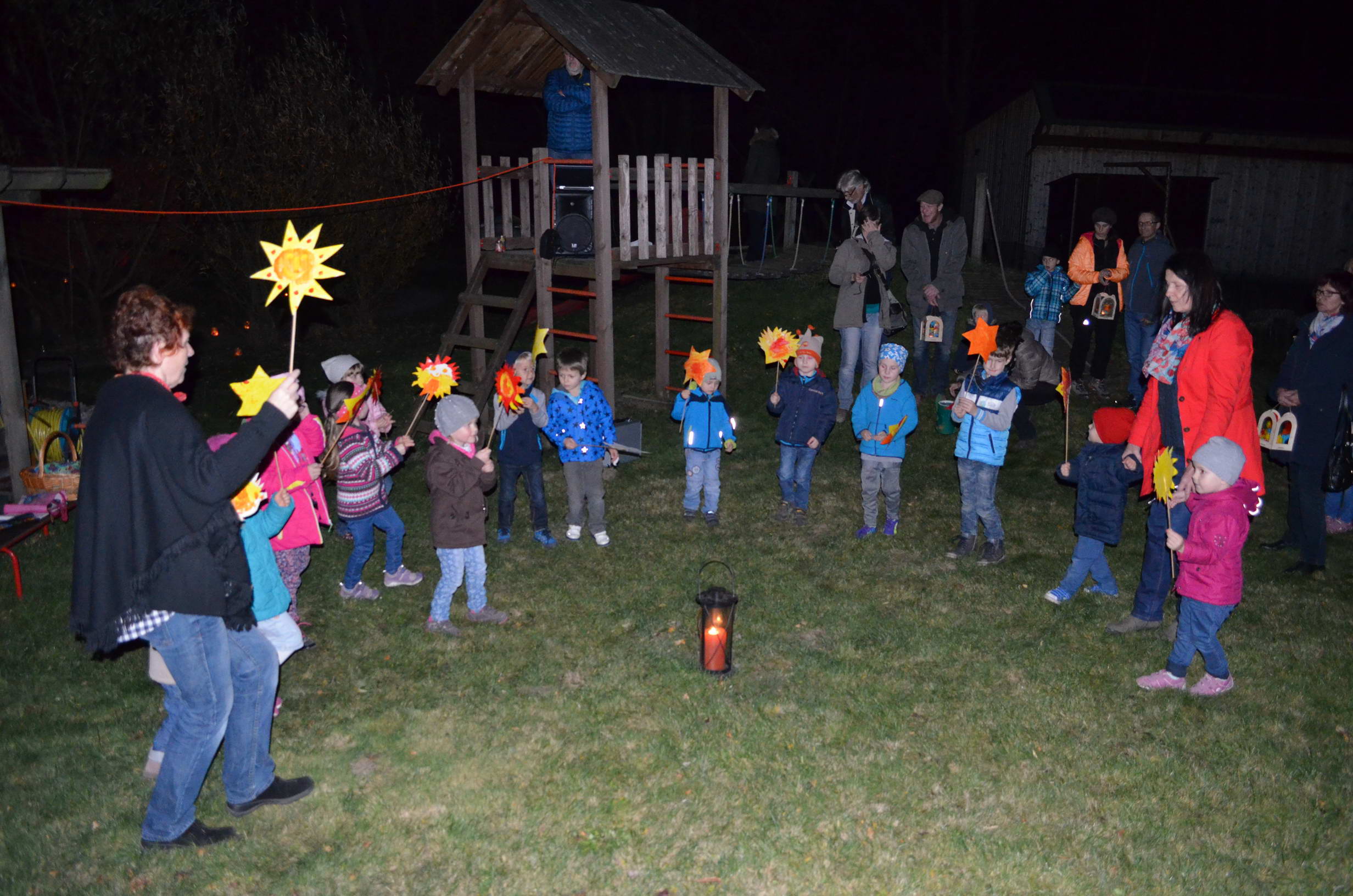 Die Kinder präsentierten Laternen- und Sternenlieder, bei denen natürlich alle mitsingen durften. Dann spielten die Kinder das Märchen vom Sterntaler, das allen Zuschauern sehr gut gefiel.